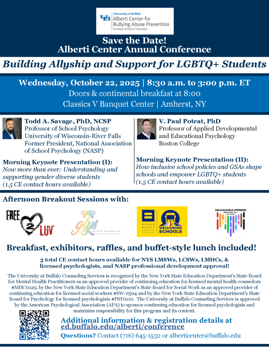 Building Allyship and Support for LGBTQ+ Students Two morning keynote presenters: (8:45-10:15 a.m.) Now More Than Ever: Understanding and Supporting Gender Diverse Students Todd Savage, PhD, NCSP, Professor of School […]